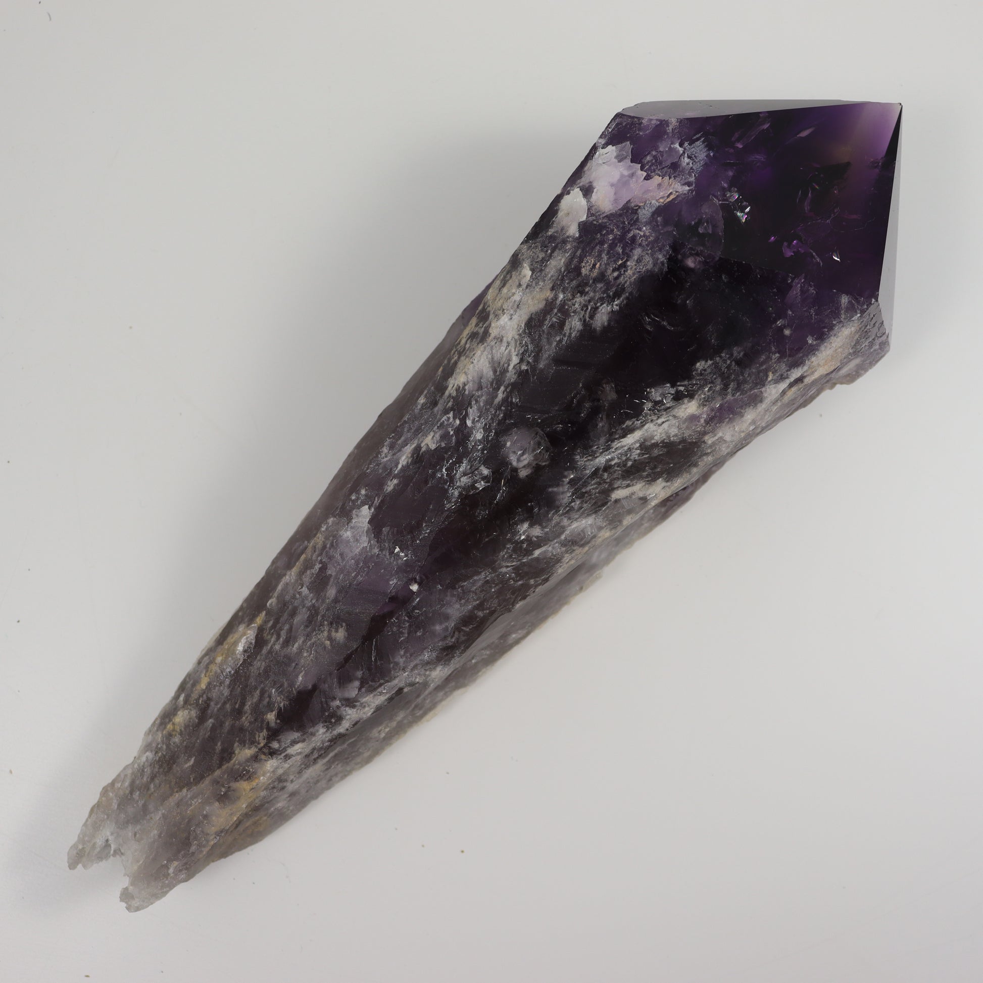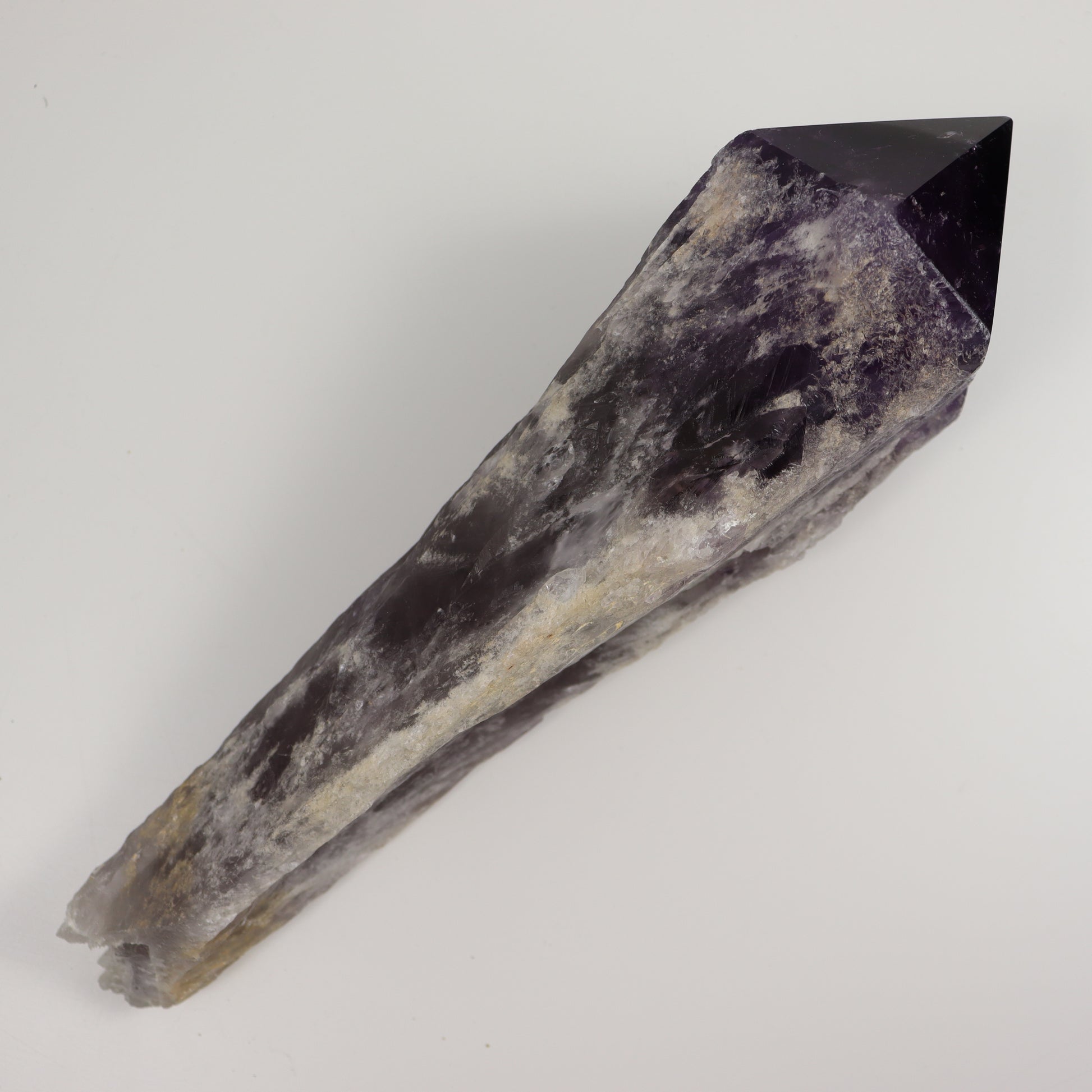 Transform your energy and harmonize your life with the Amethyst Root Wand with Polished Point and Raw Iron Inclusions. Embrace the beauty, wisdom, and serenity that amethyst and iron inclusions have to offer. Get yours today and embark on a journey of self-discovery and spiritual growth, grounded in the power of the Earth and elevated by the ethereal qualities of amethyst.