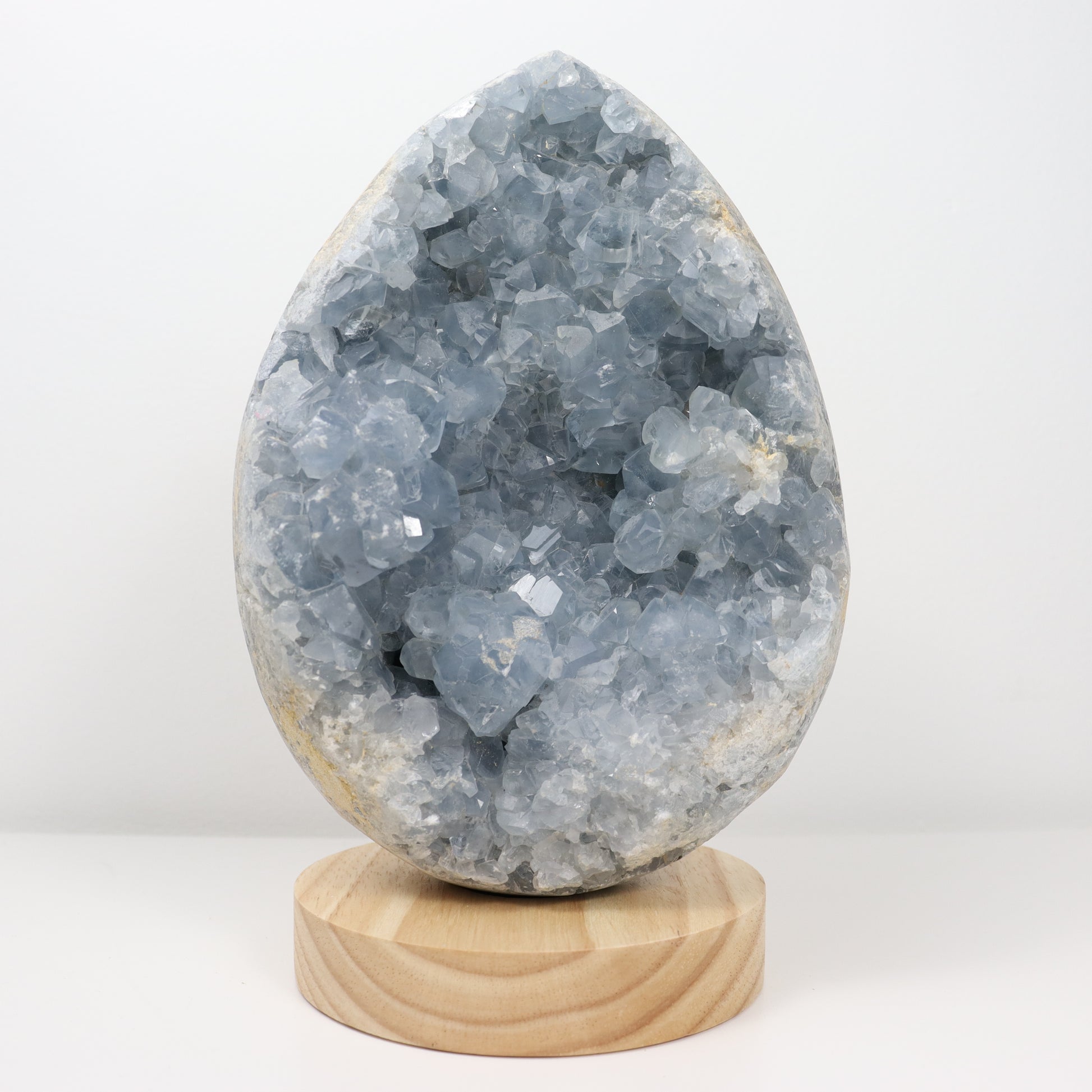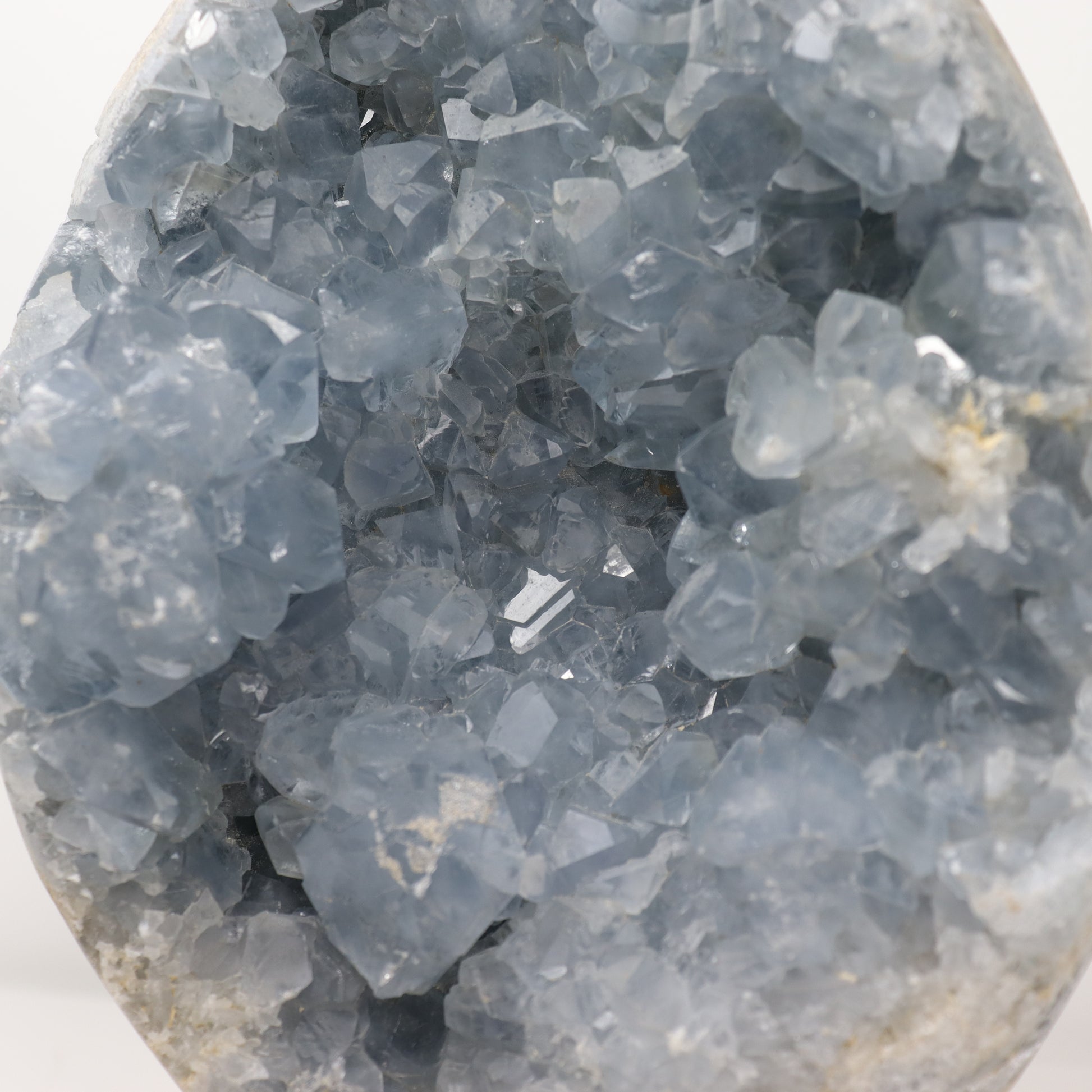 Embrace the celestial energies and elevate your surroundings with the timeless beauty of our Celestite Semi-Polished Egg Geode – a true masterpiece from the heart of the Earth to inspire and delight.