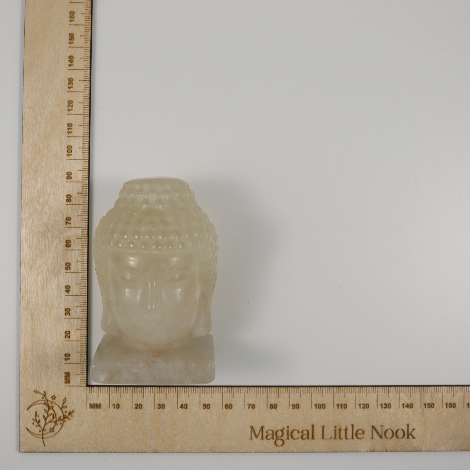 Elevate Your Space and Spirituality with the Clear Quartz Buddha Head Carving.