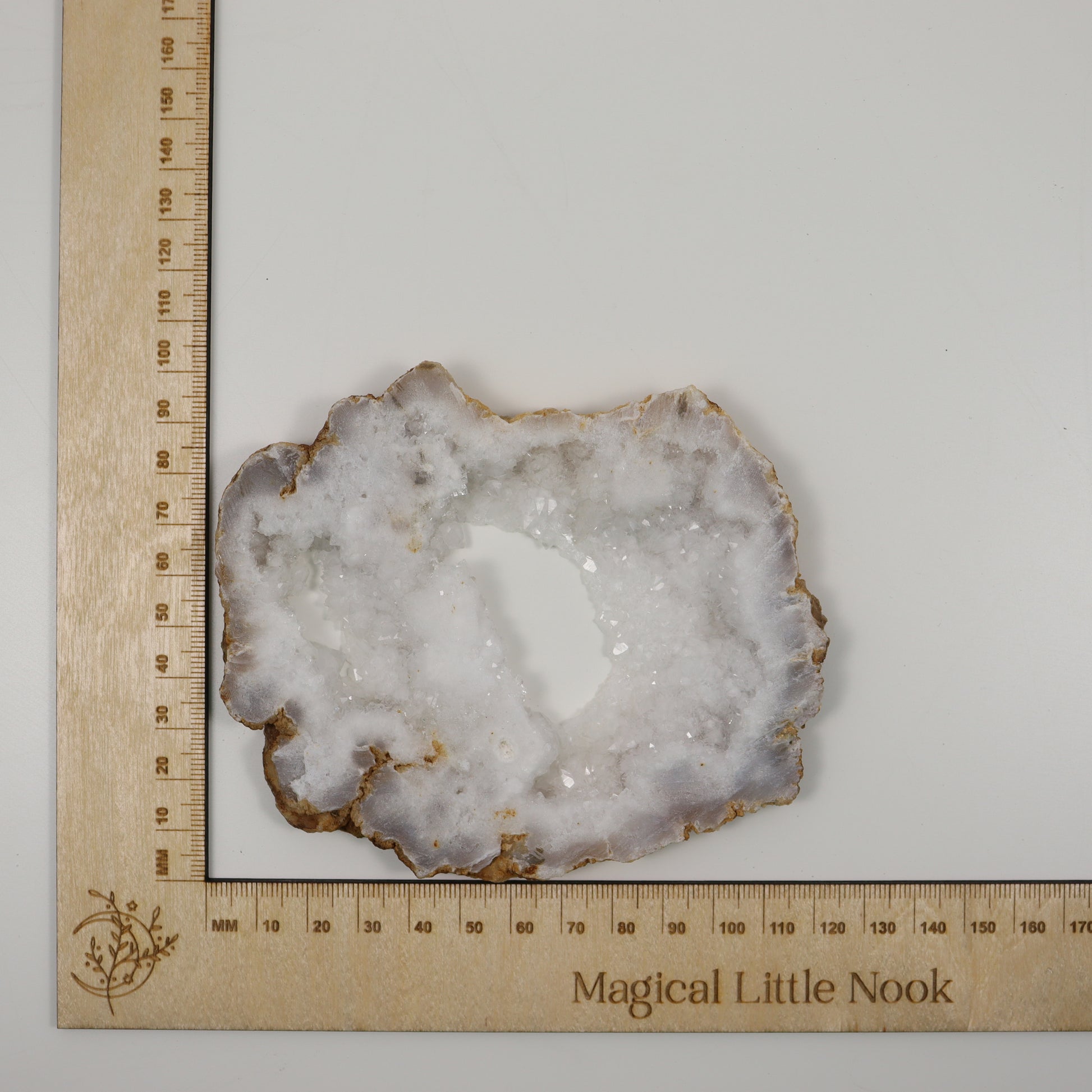Clear Quartz, often hailed as the "Master Healer," is celebrated for its ability to amplify positive energy, clear negativity, and enhance mental clarity. With our geode slabs, you can harness the healing and magical properties of this remarkable crystal, allowing it to create an environment of purity, balance, and inner harmony.