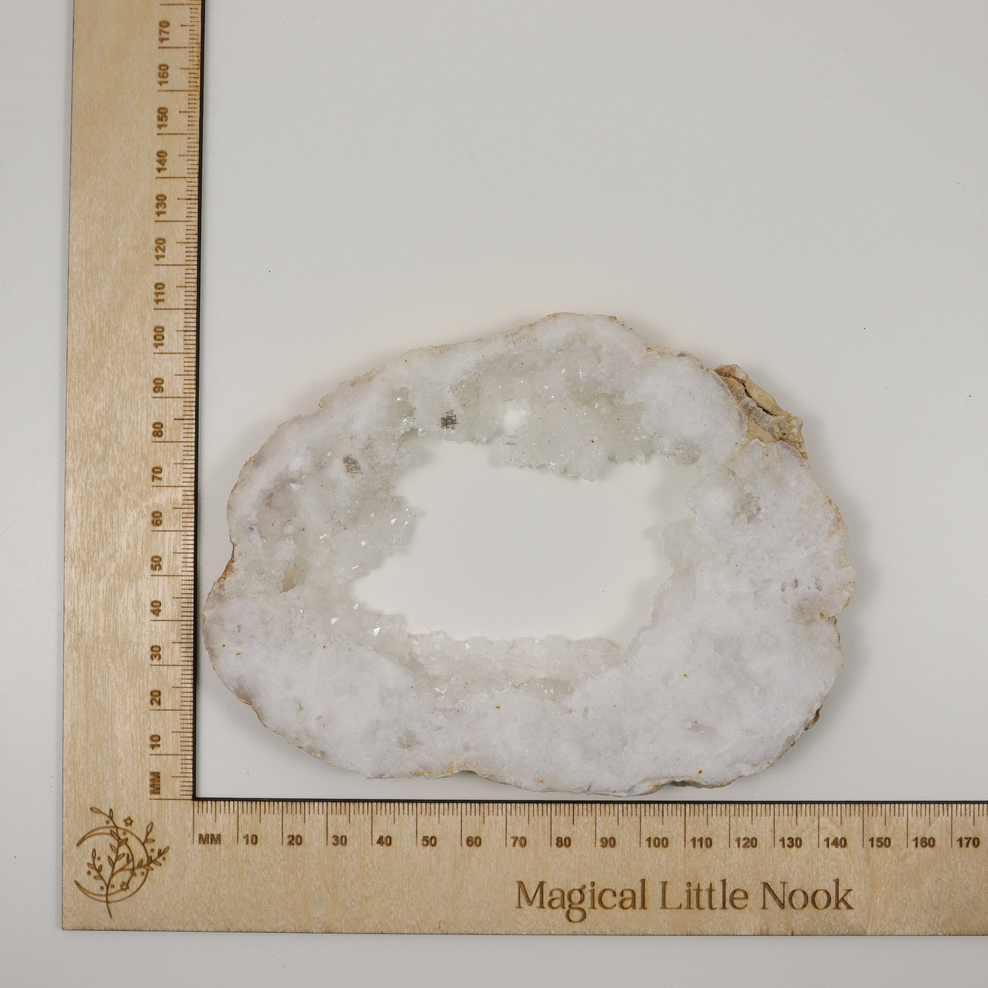 Elevate your space and explore the enchantment of Clear Quartz with these exquisite geode slabs. Each piece is a portal to the Earth's energies, a source of healing and magic, and a stunning addition to your decorative repertoire. Welcome the elegance and power of our Clear Quartz Geode Slabs into your life today.