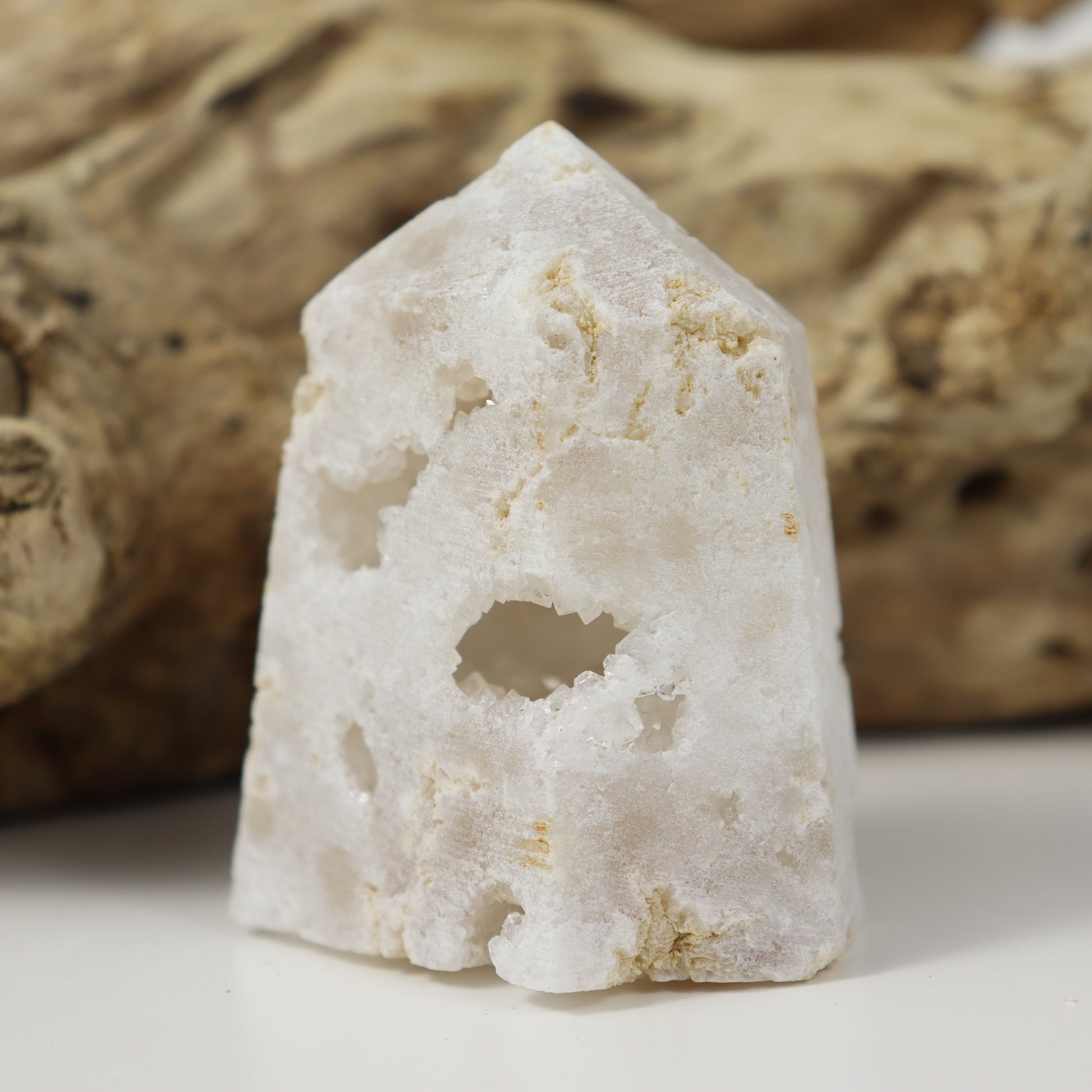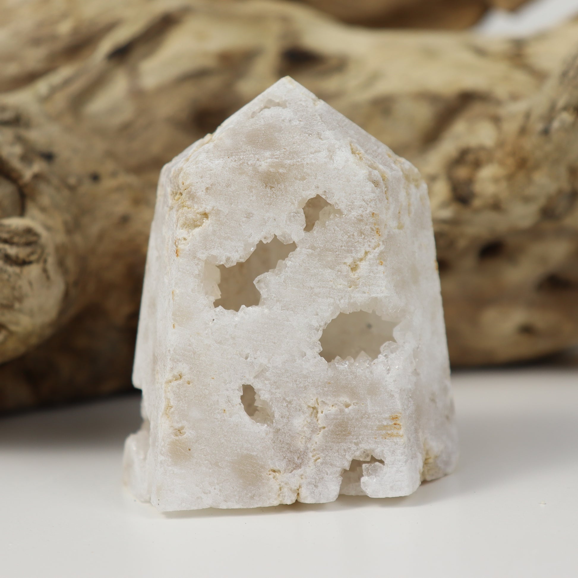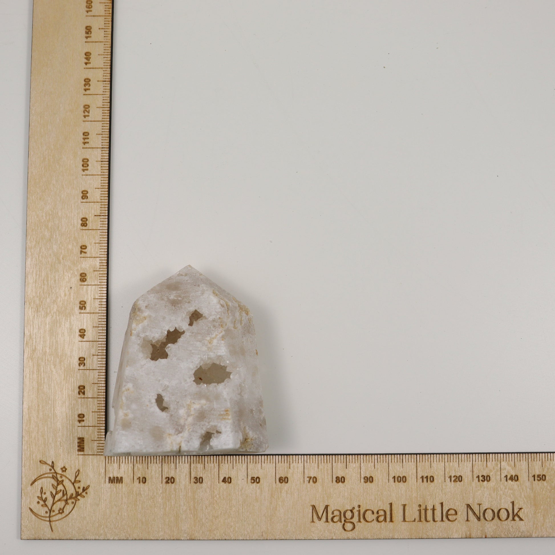 Embrace the harmonious fusion of nature's crystals and artisan-crafted design with our Clear Quartz Geode Tower. Elevate your surroundings and let this radiant gem become the centerpiece that reflects both the majesty of the Earth and the craftsmanship of those who shaped it.