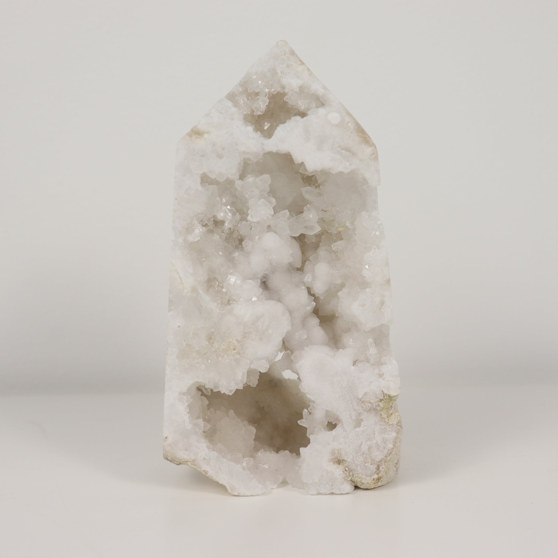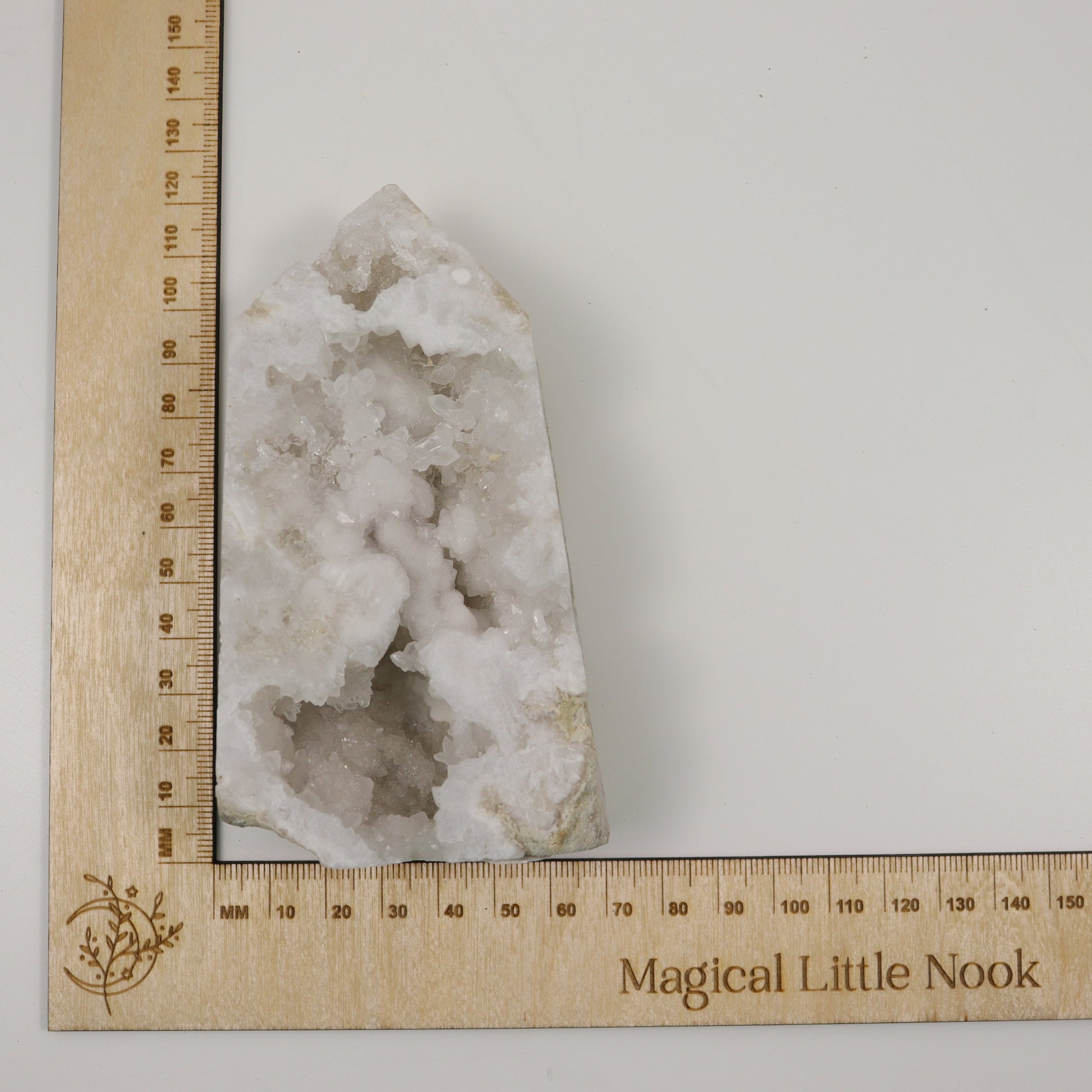 Experience the best of both worlds with our Clear Quartz Geode Tower,
