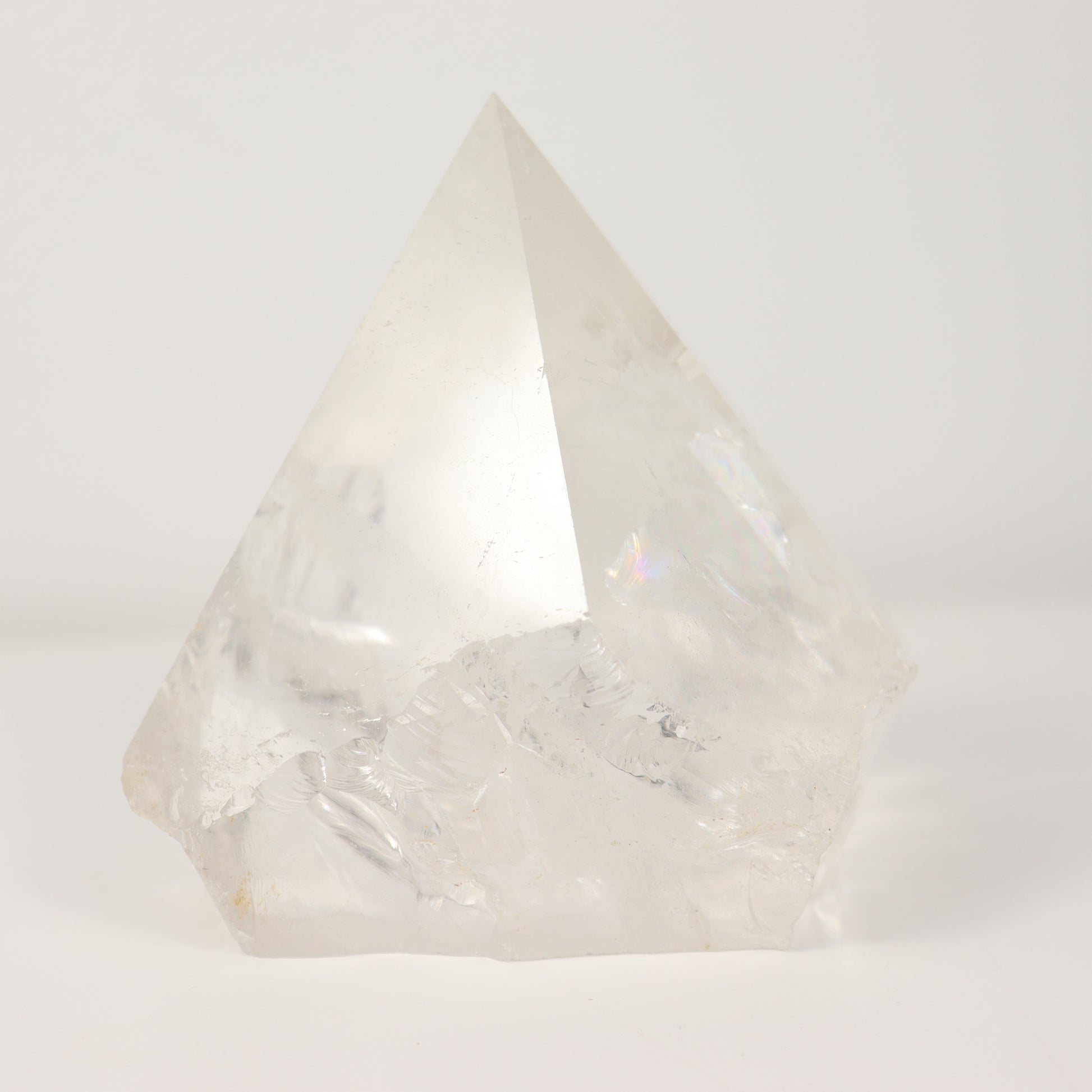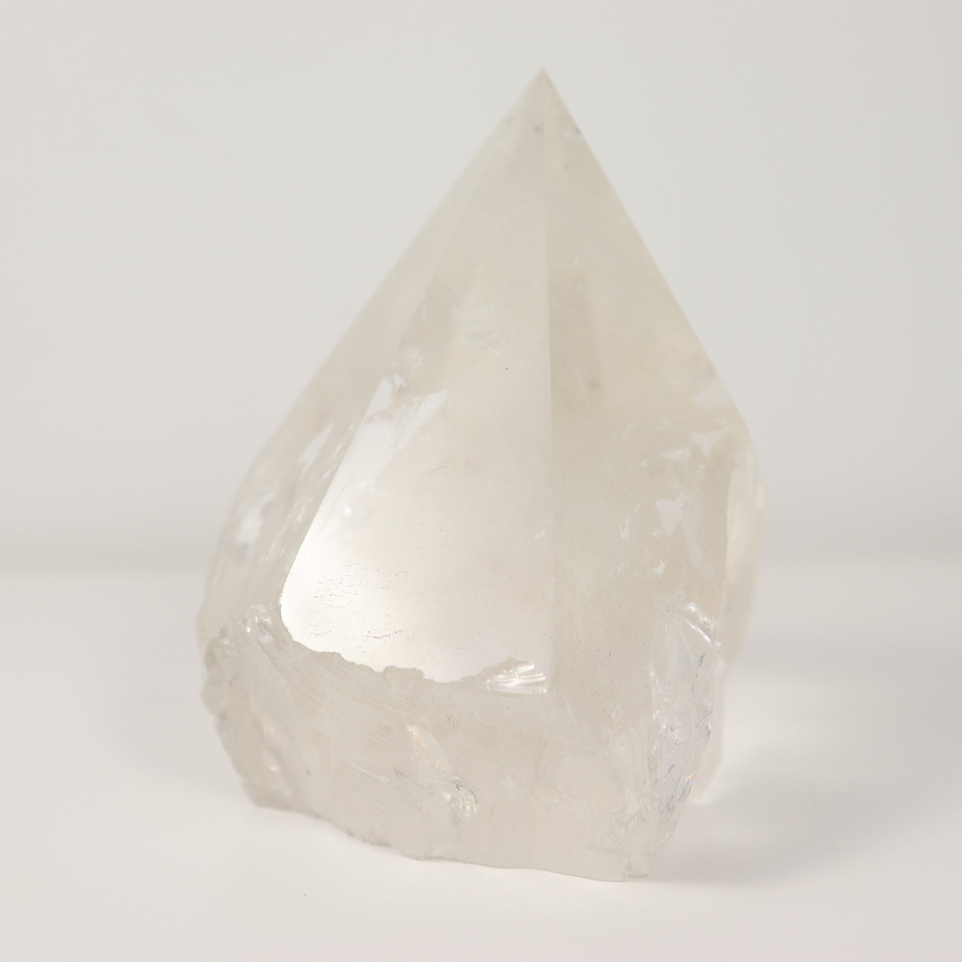 Whether displayed in your meditation space, living room, or office, this Clear Quartz Semi-Polished Point becomes a striking conversation piece and a source of inspiration. It harmonizes beautifully with various decor styles.