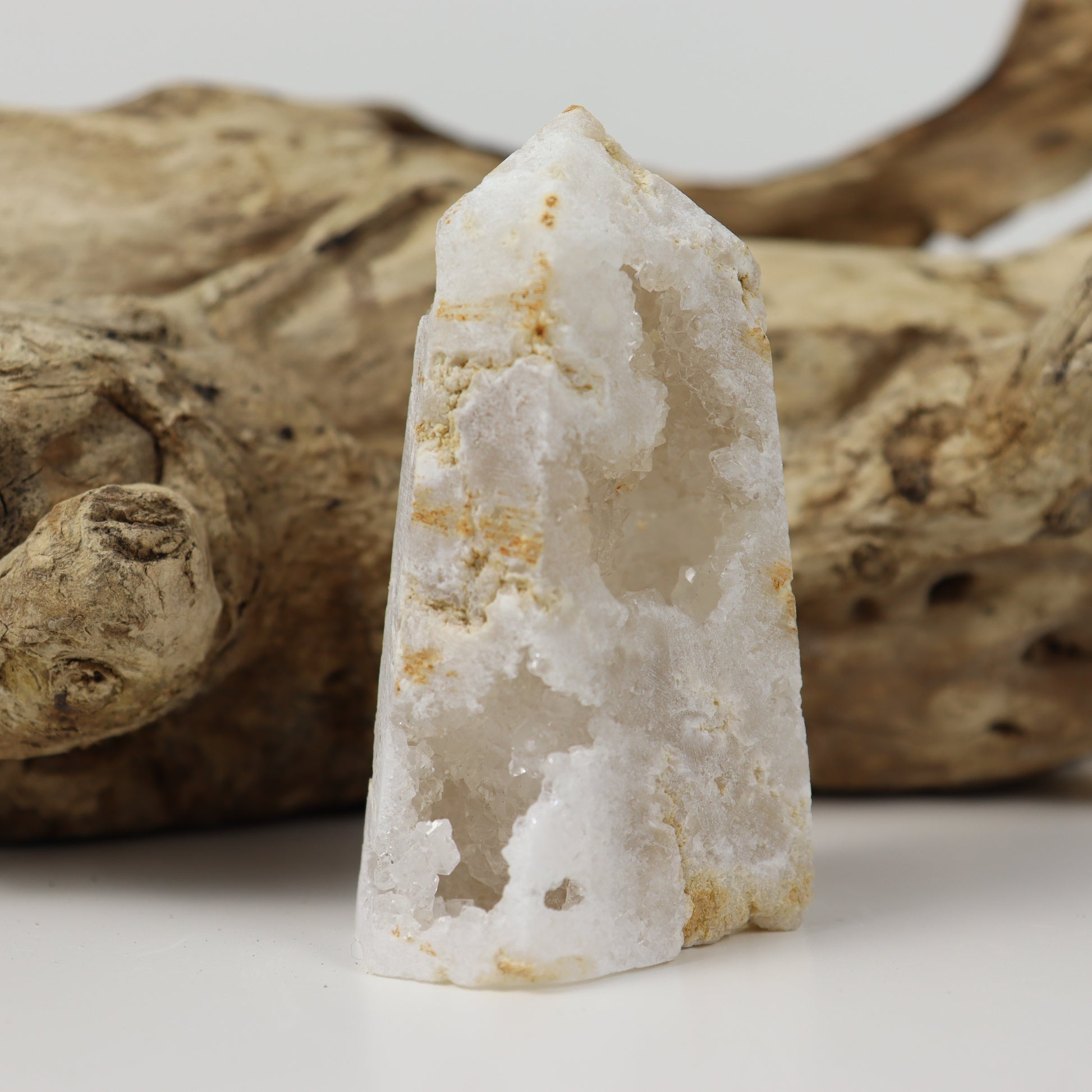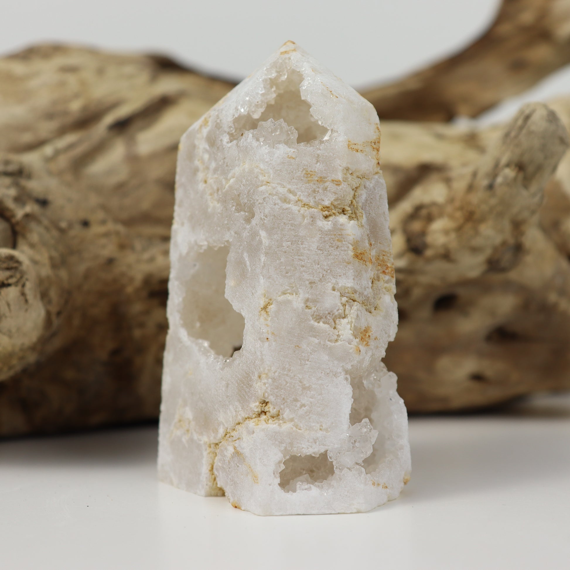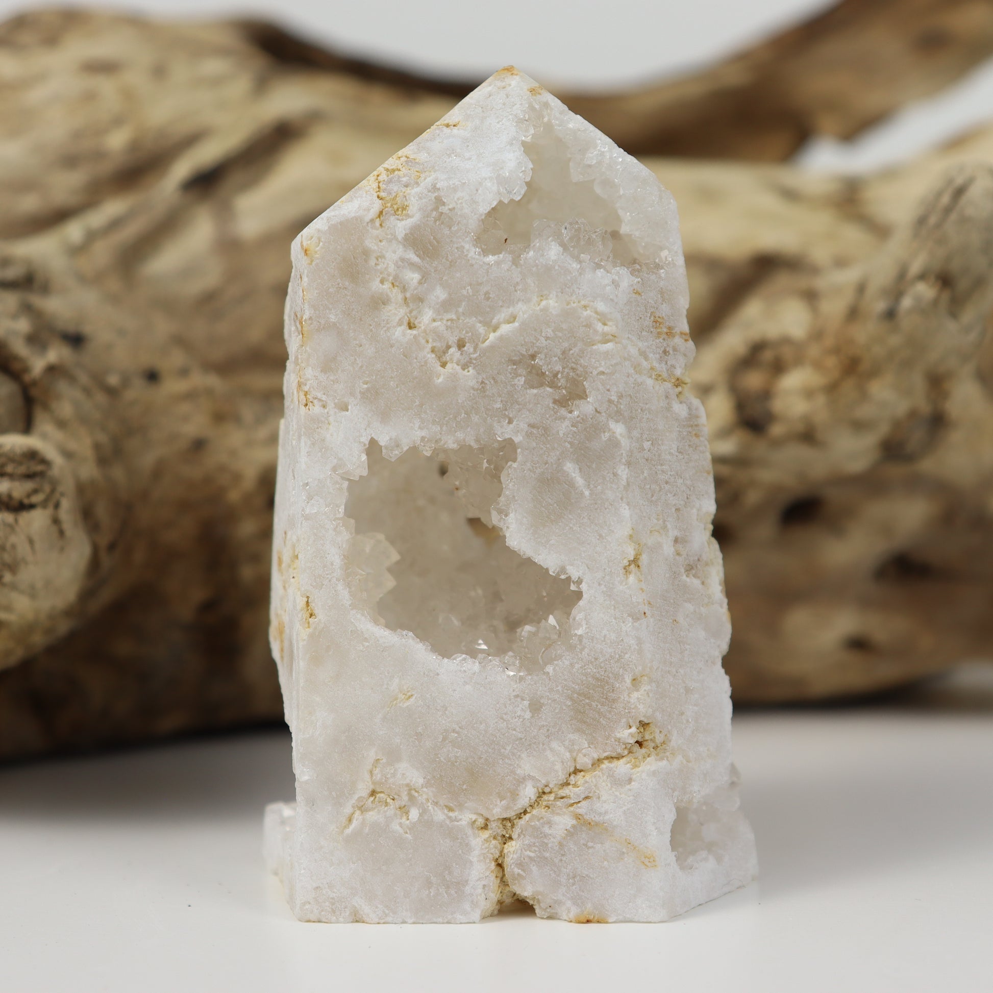 Experience the best of both worlds with our Clear Quartz Geode Tower,