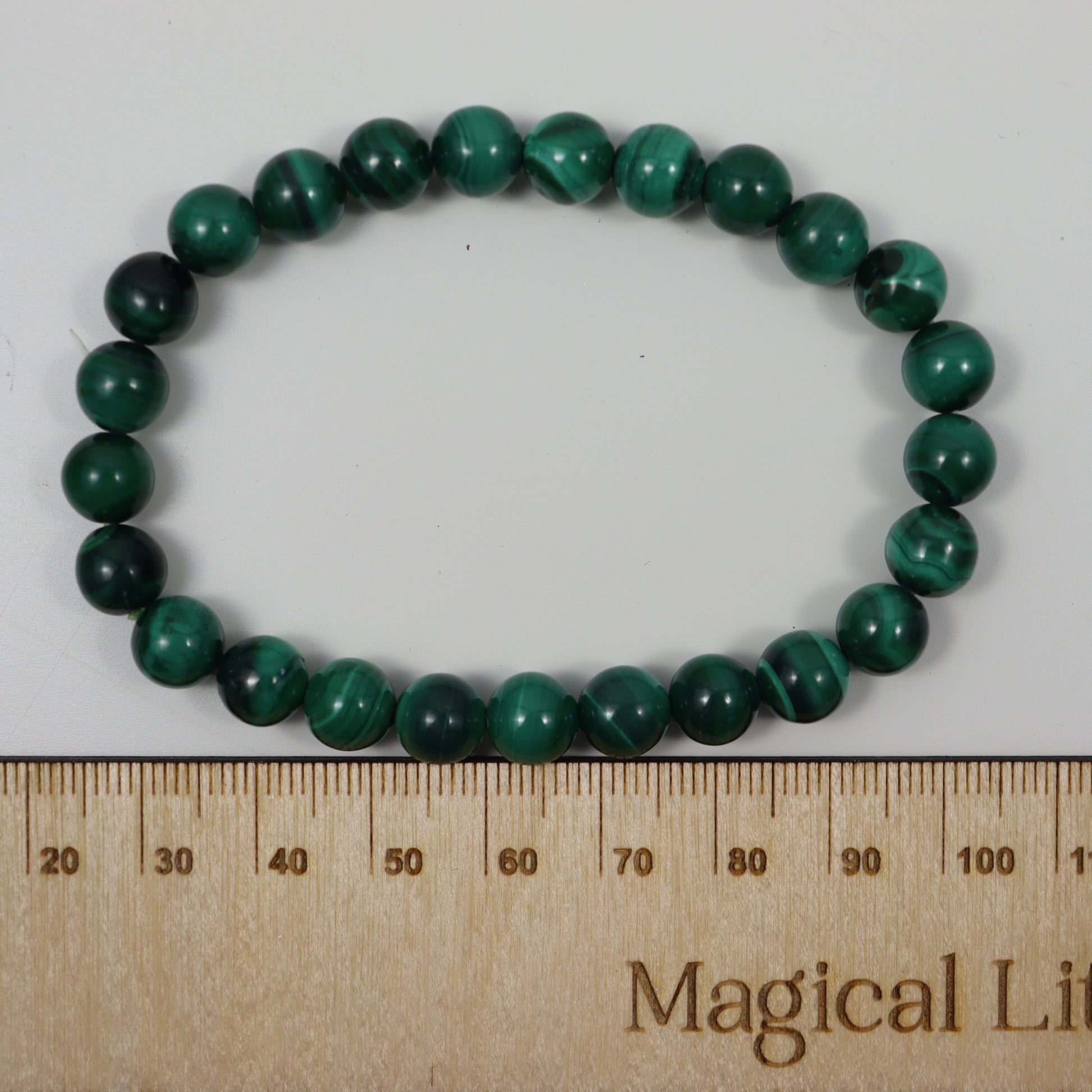 Introducing the Malachite 8mm Beaded Bracelet - a stunning and elegant addition to your jewelry collection. This bracelet showcases the mesmerizing beauty of malachite, known for its rich green