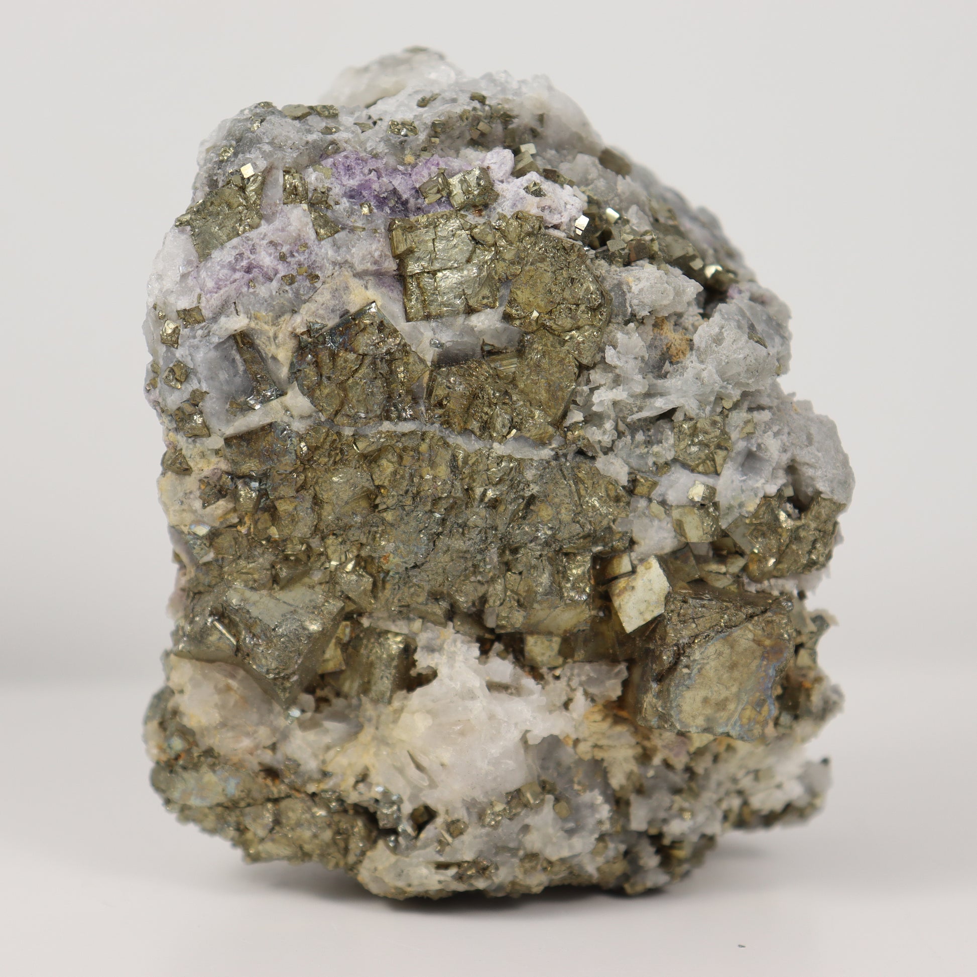 Pyrite Specimen Cluster with Amethyst Inclusions and Clear Quartz