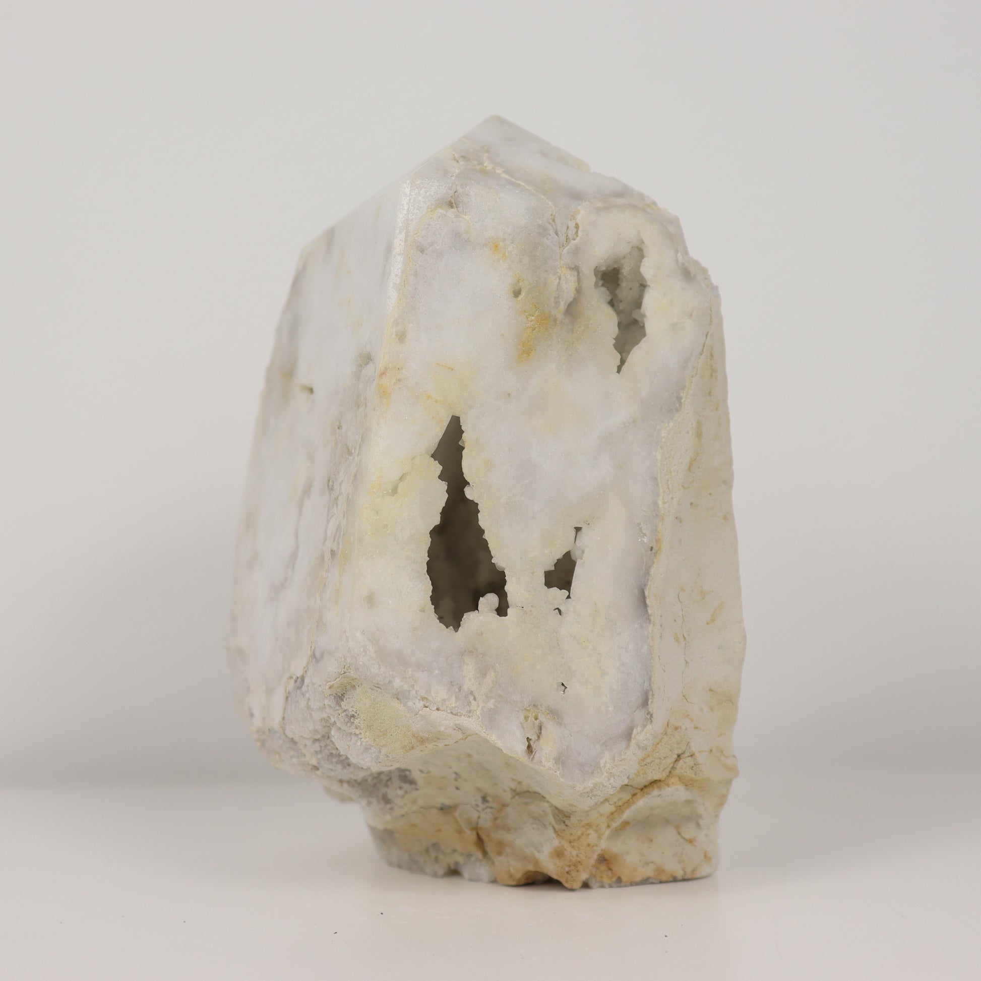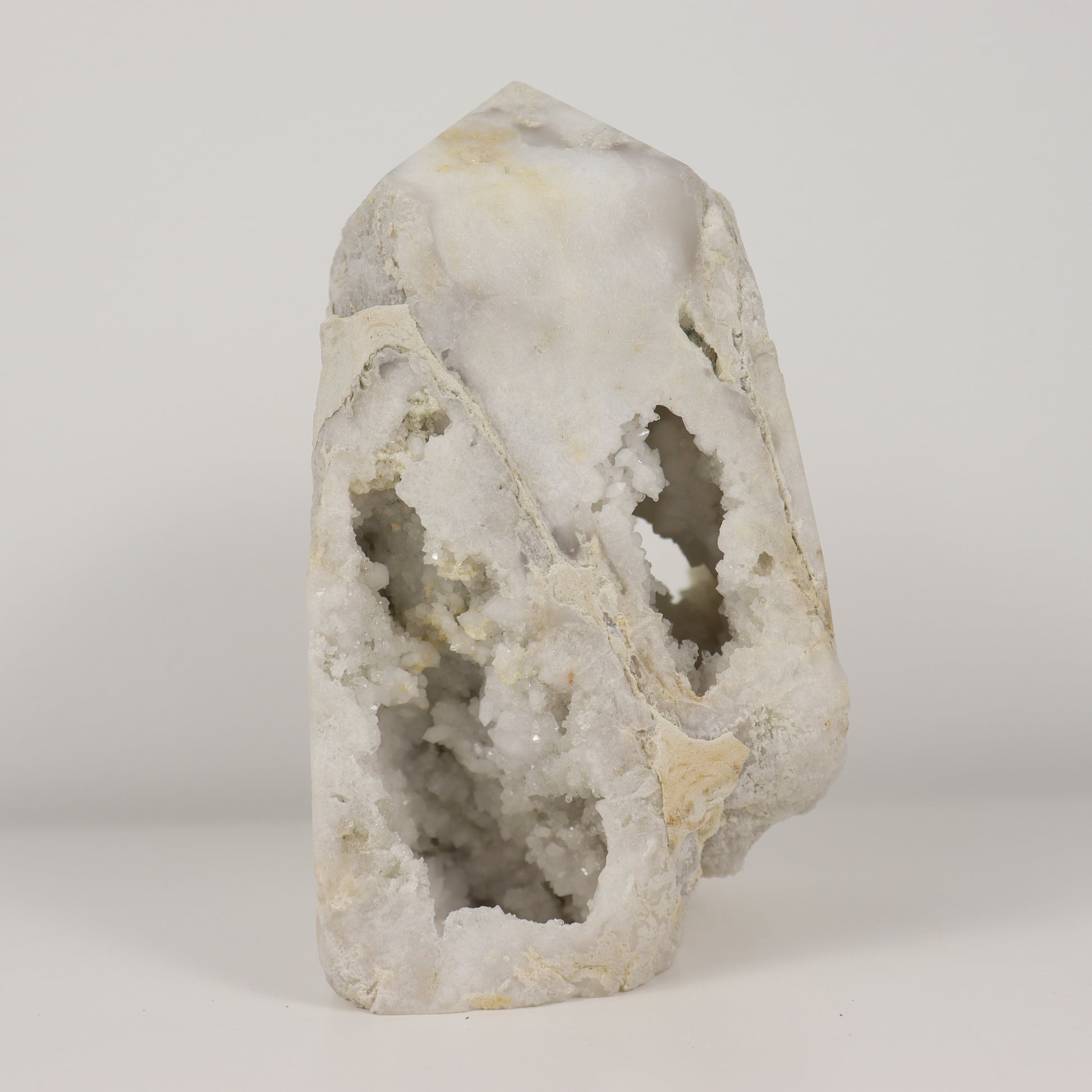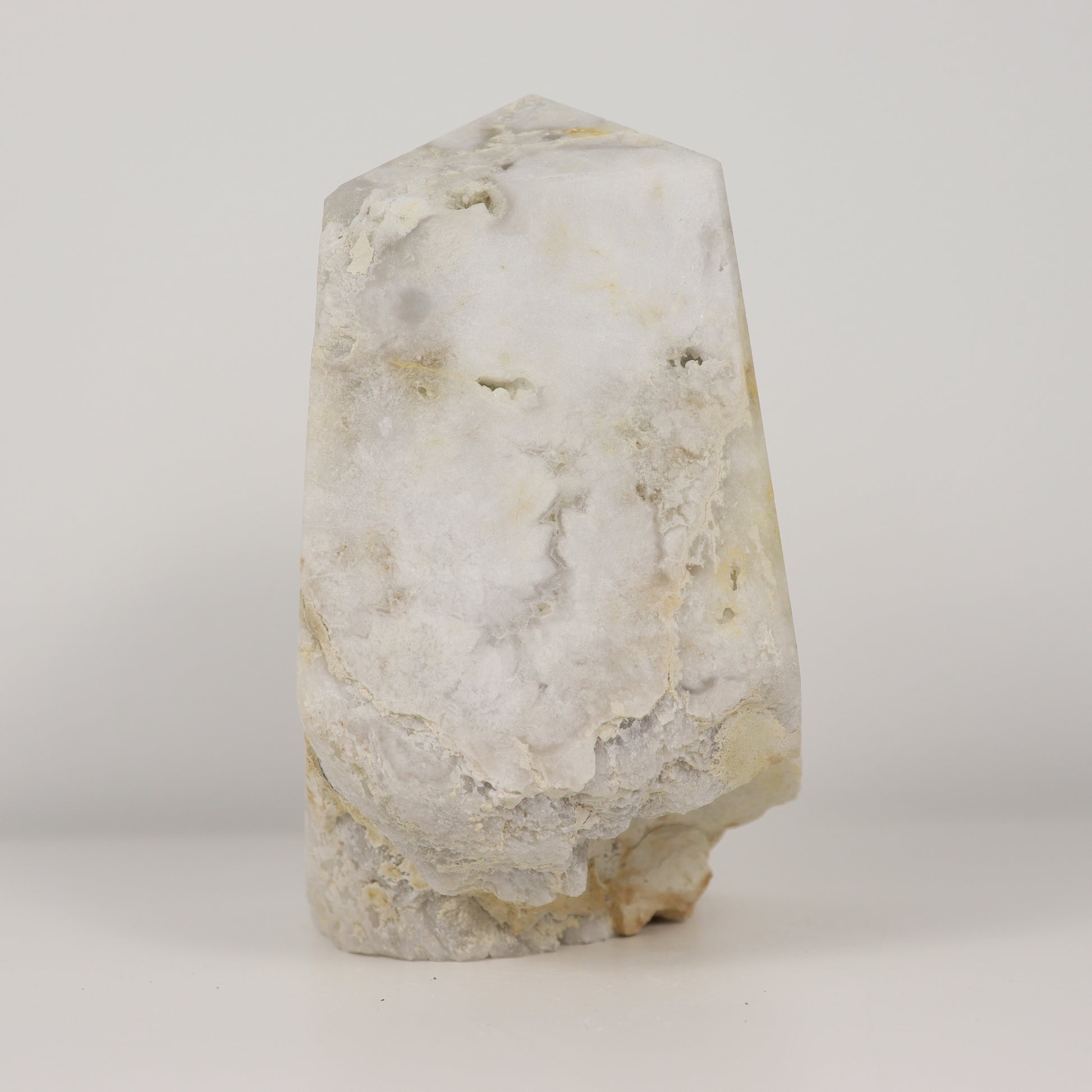 Our White Agate Druzy Pillar is a testament to the captivating beauty of agate. The pristine white hue of this stone is adorned with tiny druzy crystals, giving it a delicate and enchanting appearance. Each pillar is a unique masterpiece of nature, displaying its own patterns and formations.